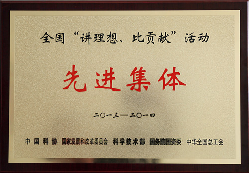 公司榮獲2013-2014年度全國“講理想、比貢獻(xiàn)”活動先進(jìn)集體稱號