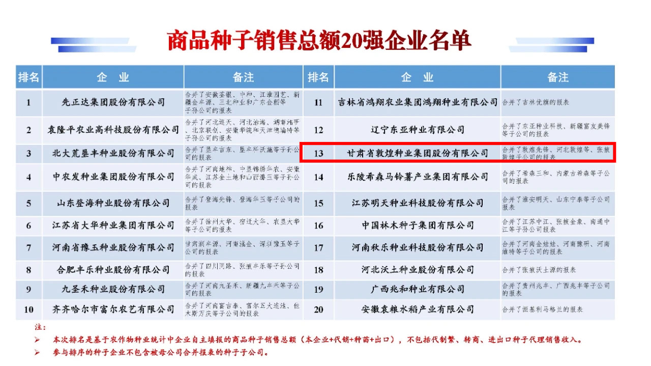 敦煌種業(yè)被第十六屆中國國際種業(yè)博覽會暨第二十一屆全國種子信息交流與產品交易會評為雜交玉米商品種子銷售總額10強企業(yè)、商品種子銷售總..[2024-11-04]